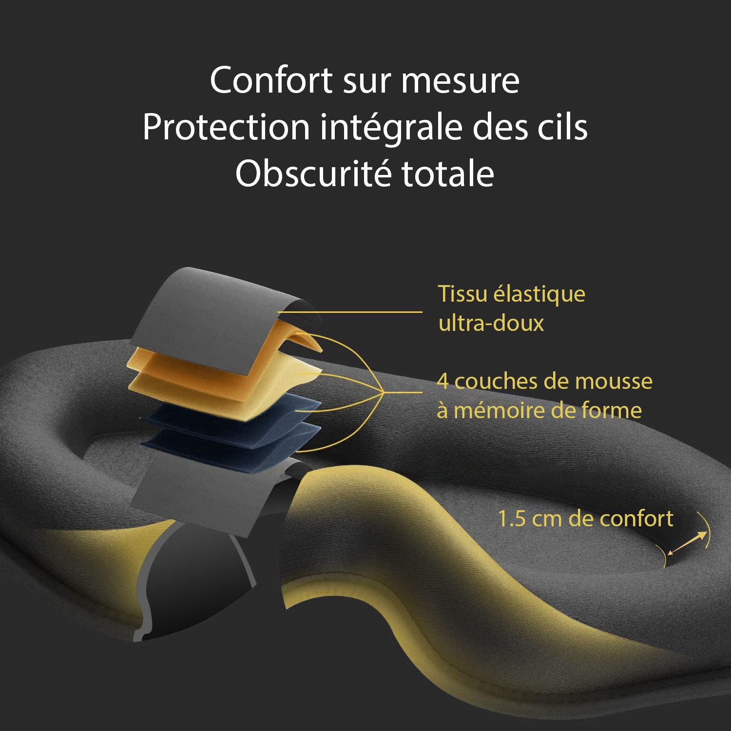 Imaginez un nuage caressant délicatement vos yeux, c'est le niveau de confort que promet notre masque.